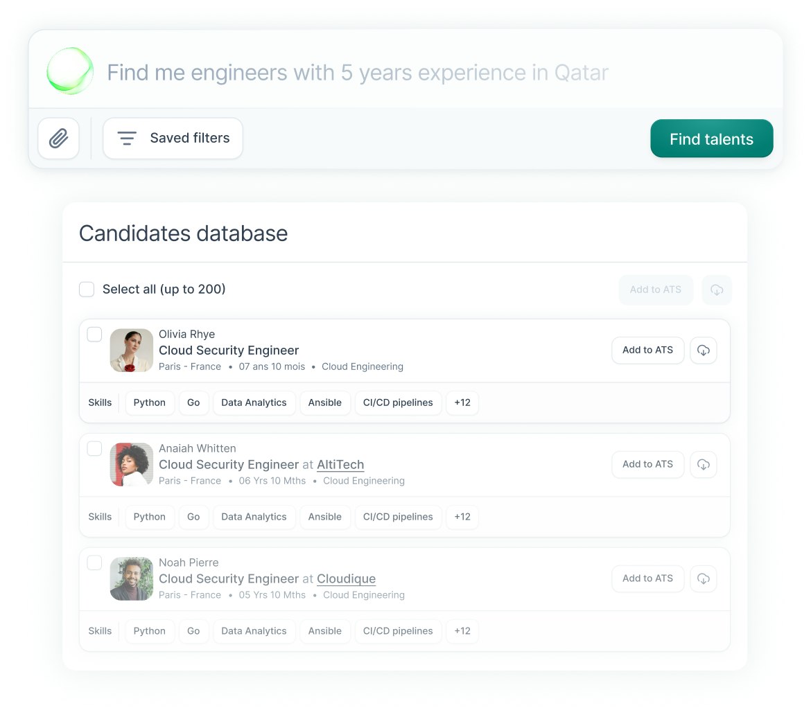 Whether you're hiring at scale or looking for niche skills, your next great hire is already in here, just a few filters away.