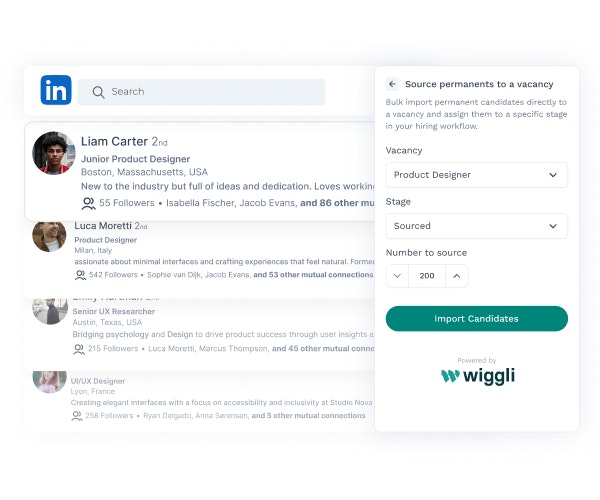 Wiggli’s Chrome extension lets them import up to 200 profiles at once, directly into your pipeline - enriched, tagged, and ready for follow-up.