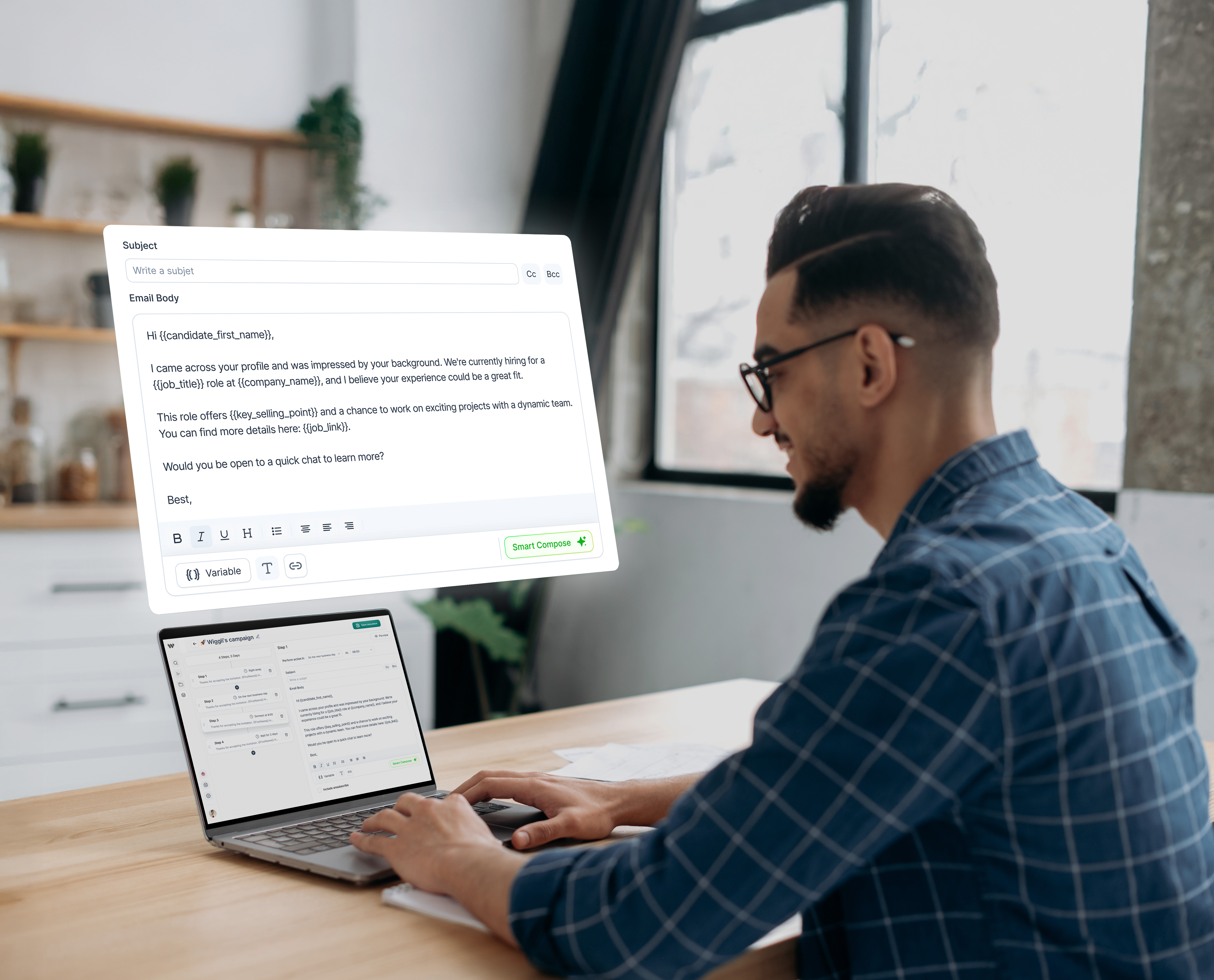 Next, Wiggli AI crafts a tailored first touch that references the candidate’s actual background, boosting reply rates and breaking through to passive talent that isn’t wearing an “Open to Work” badge.